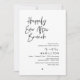 Marque el comienzo de su para siempre con elegancia utilizando nuestra tarjeta de invitación de celebración de la mañana después de la boda con el tema contemporáneo en blanco y negro, "Happily Ever After Brunch". Perfecta para parejas que extienden su alegre ocasión, esta invitación emana sofisticación con un toque de diversión, preparando el escenario para un evento memorable. Adornada con un tema de diseño de letra moderno y atemporal, agrega un toque de encanto refinado a sus festividades. Creada por TeeshaDerrick, esta invitación promete capturar hermosamente su historia de amor.