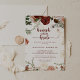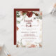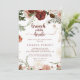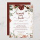 Este brunch dorado rústico con flores, con la invitación a la ducha de novia, es perfecto para una simple ducha de boda. El diseño se compone de marsala pintada a mano, flores rosas, rubias, borgoñas y doradas con hojas verdes dispuestas en hermosas coronas.