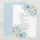 Invitación Brunch marfileño-azul acuarela y Rosas marfileños