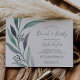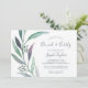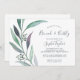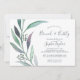 Este brunch morado y verde de eucalipto y su burbujeante invitación son perfectos para una moderna ducha de boda al aire libre. El diseño botánico, sencillo y elegante, presenta una vegetación acuática con acentos de lavanda y morado oscuro.