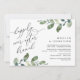 Hermoso diseño romántico moderno, con temática de acuarela de hojas de eucalipto verdes, Anuncio de Elopement de Boda, Tarjeta de invitación (Brunch de Felices para Siempre). Esto es perfecto para la recepción de su boda y la fiesta de celebración posterior a la boda. Agregue los detalles de su celebración de brunch / cena de elopement. #TeeshaDerrick