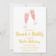 Invitación brunch rosa y dorado y ducha de novia burbujeante