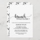 Este sencillo brunch negro de caligrafía y la original tarjeta de invitación son perfectos para una ducha de novia de temática rústica o moderna. El diseño minimalista incluye un elegante guión de broche y un bonito corazón femenino. El respaldo presenta un patrón clásico de hojas y ramas.