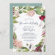 Este brunch tropical de brisa y burbujeante invitación es perfecto para una elegante ducha de matrimonio en primavera o verano. El diseño floral está decorado con flores rojas, burdeos, rosas y blancas en una corona de vegetación tropical de acuarela con un ambiente hawaiano relajado.