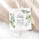 Este brunch tropical geométrico y la burbuja de la ducha de novia es perfecto para una simple ducha de boda. El diseño está decorado con hermosas hojas verdes pintadas a mano, adornando un marco geométrico dorado.