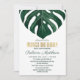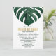 Hoja tropical del monstera del queso suizo de la playa de la acuarela verde elegante, moderna, y simple en el fondo blanco con el falso verano impreso de la tipografía del efecto metalizado de oro burbujeante y las invitaciones nupciales de la ducha del brunch. Este diseño clásico y sofisticado es perfecto para cualquier acontecimiento elegante y de moda, incluyendo bodas y ocasiones diarias. Personalice con su propio mensaje en el frente así como una inicial modificada para requisitos particulares del monograma en la parte posterior. Todo el diseño de la impresión de la foto.