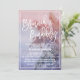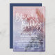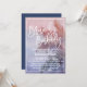 Este brunch tropical soleado y la tarjeta de invitación burbujeante es perfecto para un destino o una ducha de novia en la playa. El diseño se caracteriza por una impresionante puesta de sol de color rosa morado y azul acuático con una palmera soplando en la brisa.