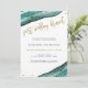 Estas elegantes y modernas invitaciones de brunch postboda cuentan con piedras geolocales verde azuladas de acuarela, con tipografía de oro falso y salpicaduras.