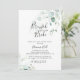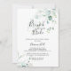 Este brunch verde de eucalipto con la invitación a la ducha de novia es perfecto para una moderna ducha de boda. El diseño presenta hermosas hojas de eucaliptos verdes de color acuático pintadas a mano que inspiran el encanto natural.