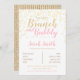 Otra invitación de "Brunch y Burbujas" para despedida de soltera con muchas burbujas de champán dorado y purpurina.
