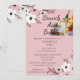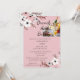 Esta imagen muestra una invitación a una fiesta de té de boda con fondo rosa y diseño floral. La invitación es para una fiesta de té de boda en honor a Annabella Ford. El evento está programado para el 10 de julio a las dos de la tarde en The Pavillion Restaurant, ubicado en 2385 Asteron Street, Jackson, MH.