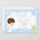 Esta invitación de la Primera Comunión en Damask muestra a un adorable muchacho de pelo castaño con un primer traje de comunión sagrada.