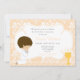 Esta invitación de la Primera Comunión en Damask muestra a un adorable muchacho de pelo castaño con un primer traje de comunión sagrada.
