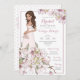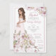 La invitación a la ducha de novia floral incluye personalizable rubio, marrón, pelo ardor y tonos de piel en un hermoso vestido de boda de flores.