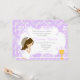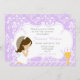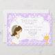 Esta invitación de la Primera Comunión en Damask muestra a un adorable chica de pelo marrón en un primer vestido sagrado de comunión.
