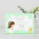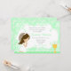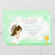 Esta invitación de la Primera Comunión en Damask muestra a un adorable chica de pelo marrón en un primer vestido sagrado de comunión.