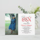 Tipografía divertida Invitación a graduación de foto de enfermera BSN con espacio para dos eventos. Gran BSN rojo con gorra de enfermería (con año de graduación), estetoscopio y jeringuillas con espacio para una cita de enfermería en la parte posterior. Una foto vertical funcionaría mejor con esta disposición. Otros colores disponibles en nuestra colección de graduaciones. Póngase en contacto con el diseñador para solicitar colores personalizados.