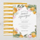 She's found her main squeeze! A modern citrus-themed bridal shower invitation featuring "main squeeze" in brush calligraphy framed by a fruit and flower watercolor wreath. The reverse features hand-painted watercolor stripes in yellow. As part of the budget selection here on Zazzle, these invitations do not come with envelopes nor do they fit snugly in a standard-sized envelope. The closest size is A6 but there will be a gap of approximately half an inch. If you don't mind the lack of snugness you could use such widely available A6 envelopes. Otherwise, this design can be transferred to a standard 5x7 format (which comes with envelopes) using the design transfer tool. As a rough guide, as of the time of writing, 100 budget invitations (including a volume discount) would cost around $39 whereas 100 standard 5x7 invites including envelopes would cost approximately $135. Your mileage may vary depending on Zazzle's available promo codes, site-wide sales, or changes in pricing.
