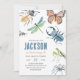 Invitar a amigos y familiares a celebrar el cumpleaños de tu pequeña con esta invitación temática de insectos.