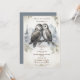 Personalice esta elegante invitación de boda de lechuza granera. La invitación presenta una hermosa ilustración de dos lechuzas graneras. Las lechuzas están rodeadas de suaves plumas blancas, y el fondo es de pinos y montañas. Las invitaciones se imprimen en cartulina de alta calidad y están disponibles en varios tamaños.
