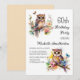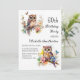 Invitación a la fiesta de cumpleaños número 60 con pinturas de una linda lechuza sentada entre flores en las ramas de un árbol. Contáctame para obtener ayuda con tus personalizaciones o para solicitar productos adicionales de correspondencias o coordinación de Zazzle para tu celebración.