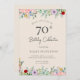 Invitaciones de cumpleaños para adultos | Rústico beige floral Elegante 70ª Invitación Este diseño clásico y vintage presenta un tema rústico floreado de flores silvestres y bohemia y tipografía de escritura sobre fondo beige. Personalice la invitación con sus detalles y si desea reorganizar el estilo y la ubicación del texto, pulse el botón "Haga clic para más personalizares". Para más productos en el mismo tema visita mi tienda: Youtopia Official.