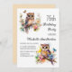 Invitación a la fiesta de cumpleaños número 75 con pinturas de una linda lechuza sentada entre flores en las ramas de un árbol. Contáctame para obtener ayuda con tus personalizaciones o para solicitar productos adicionales de correspondencias o coordinación de Zazzle para tu celebración.