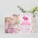 Invitación de primer cumpleaños de conejo con foto de personalizado. Chica Pequeña Conejita. Invitación al Día del Huevo de Pascua. Conejo. Huevos de caza. Flor floral color agua fondo rosado Rubor Pastel. 1.ª 2ª 3ª 4ª 6ª 7ª 8ª 10ª 11ª 12ª 13ª 14ª, Cualquier Edad. Digital Imprimible. Para una mayor personalización, haga clic en el botón "Personalizar" y utilice nuestra herramienta de diseño para modificar esta plantilla.