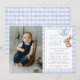This charming first birthday party photo invitation features a cute little bunny holding balloons and a blue gingham background. Designed by Thisisnotme©