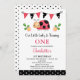 Invitación Bunting Red Black Our Little Ladybug 1er cumpleaño