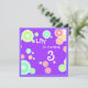 Burbujas coloridas contra fondo violeta. Tarjeta de invitación alegre para ocasiones de niños/invitaciones. Puede cambiar todo el texto en ambos lados. De esta forma es adecuada para cualquier edad o fiesta /annoucements .Personalizado plantilla de invitación de Alma Wad . Ver marca coincidente: