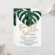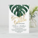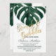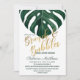 Elegante, moderna y sencilla playa tropical de color verde agua con queso monstera hoja sobre fondo blanco con tipografía falsa de Relieve metalizado dorado verano Brunch y Bubbles Bridal Shower Invitaciones. Este diseño clásico y sofisticado es perfecto para cualquier evento elegante y de moda, incluyendo bodas y ocasiones diarias. Personalice con su propio mensaje en la parte delantera, así como un monograma inicial personalizado en la parte posterior. Todo el diseño de impresión fotográfica.