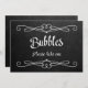 Sencillo y elegante estilo de pizarra "Burbujas por favor, tome una" señal boda. Este es un signo de tarjeta plano impreso de 5" x 7", se verá realmente elegante en un marco de imagen.