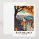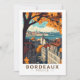 Burdeos diseño de viaje vector retro. Burdeos, centro de la famosa región vitivinícola, es una ciudad portuaria en el río Garona en el suroeste de Francia.