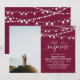 Celebre su día especial con esta invitación de aniversario de boda personalizada con foto. Este diseño presenta hermosa tipografía "shhh... es una sorpresa" y luces de cuerda sobre un fondo rojo burgundy. Puede personalizar el texto para cualquier año. Reemplace la foto de muestra con su propia foto. Suministros para fiestas a juego disponibles en mi tienda BaraBomDesign.