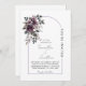 This wedding invitation features a romantic and elegant design. 🌿 In the top left corner, a lush floral arrangement of deep burgundy, white, and sage green blooms adds a touch of natural sophistication. The typography blends graceful cursive with classic serif fonts, creating a refined and celebratory tone.