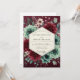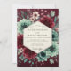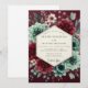 A rich burgundy backdrop showcases a lush arrangement of deep red and muted teal blossoms with delicate accents of pink and cream. This romantic design evokes a sense of opulent beauty and vintage charm, perfect for an elegant affair.