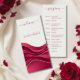 The design is predominantly burgundy, creating a bold and sophisticated backdrop, while a light barely ivory area for text ensuring your event details remain crisp, readable, and beautifully elevated. The flowing wave artwork adds depth and dimension, echoing the soft folds and luxe textures seen in modern winter wedding décor.