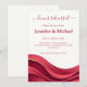 Set the tone for an elegant wedding weekend with this Burgundy Rehearsal Dinner Invitation, personalized with the couple’s names, event location, and RSVP details. Designed to coordinate seamlessly with your Burgundy Wedding Collection, this invitation showcases rich, layered burgundy abstract waves with a subtle drapery-inspired effect—capturing 2026’s trend toward deep, romantic color palettes and fabric-inspired movement.