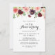Esta invitación de aniversario de bodas de 50 años con flores de primavera de color burgundy es perfecta para una celebración romántica de aniversario de boda. El diseño pintado a mano presenta hojas verdes, rosas deslumbrantes de color rosa, rubor, púrpura, rojo, blanco y burgundy, peonías cuidadosamente arregladas en pequeños y lindos ramos.