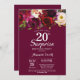 Invitación a la fiesta de cumpleaños 20 de Borgoña Floral Surprise. Invitación a la fiesta de cumpleaños roja de Borgoña. Flor floral color agua de Borgoña. 13.º 15.º 16.º 18.º 20.21.30.40.50.60.70.80.90.100. Para una mayor personalización, haga clic en el botón "Personalizar" y utilice nuestra herramienta de diseño para modificar esta plantilla.