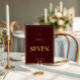 Invitación Burgundy Gold Crest Monogram Wedding Table Number