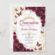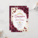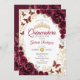 Burgundy, gold and white Quinceanera celebration invitation. Features, script font, gold butterflies, watercolor roses and tiara. Perfect for an elegant princess style glam celebration. Personalize with your own details. Printed Zazzle invitations or instant download digital printable template.