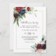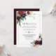 Esta invitación moderna de aniversario de bodas de 50 años en burgundy navy es perfecta para una elegante celebración de aniversario de bodas. El diseño presenta flores rojas, burgundy, navy, púrpura, azul y rosado bellamente pintadas a mano y hojas verdes.