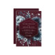 Deep burgundy serves as a rich backdrop for ethereal blooms in cool, muted tones. This design evokes a sense of dramatic romance with its opulent floral arrangements and dark, atmospheric feel. A sophisticated choice for a memorable occasion.