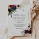 Esta invitación de aniversario de bodas de burgundy navy moderna es perfecta para una elegante celebración de aniversario de boda. El diseño presenta flores rojas, burgundy, navy, púrpura, azul y rosado bellamente pintadas a mano y hojas verdes.
