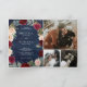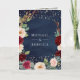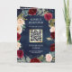 Invitación Burgundy Peach Floral QR Code Navy Blue Wedding