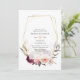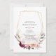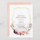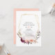 Invitación a la fiesta de compromiso de bodas florales de Boho con peonías y rosas con personalizable de marco geométrico de oro a las especificaciones de tu evento.