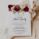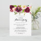 Esta invitación de aniversario de bodas de burgundy rosado rústico es perfecta para un aniversario de bodas simple. El diseño presenta flores de acuarela rosadas, rosadas, rojas, burgundy y bordo con follaje verde.
