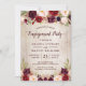 Invitación Burgundy Rubor Floral Rustic Wood Engagement Party